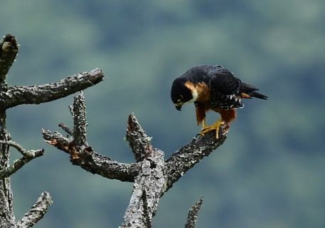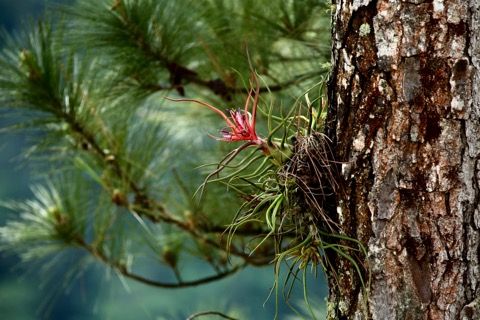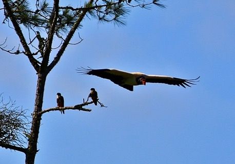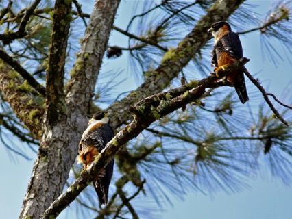Mountain Pine Ridge Area is a completely different area, a granite massif and some limestone mainly covered by Honduras pine forest and broadleaf forest. The climate is subtropical and there are a few species which much harder or can not be found elsewhere, such as the regionally endemic Rusty Sparrow, Lovely Cotinga, Solitary Eagle and many more.